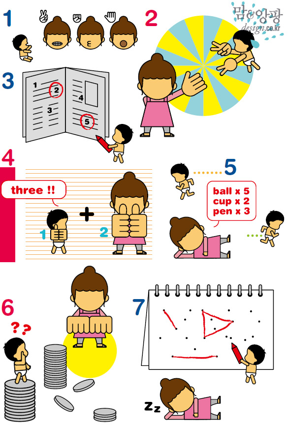 ★ 둘이서도, 여럿이서도 즐길 수 이는 놀이로 입으로만 할 수 있는 가장 재미있는 게임 중 하나. 숫자를 세기 시작한 아이의 수놀이로 제격이다.
