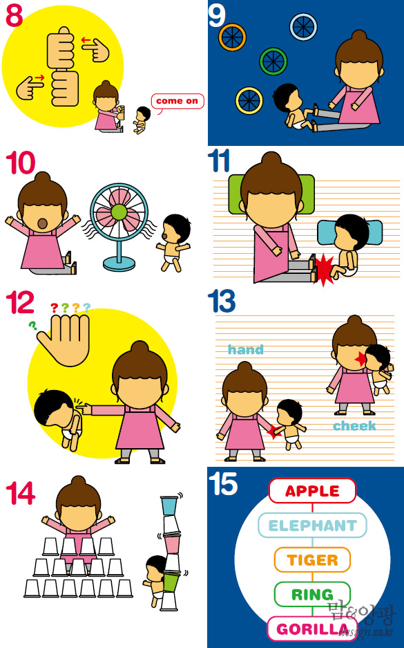 ★ “가위바위보!”를 외치면서 엄마가 얼마나 웃긴 표정을 짓느냐에 따라 아이의 웃음 강도가 달라진다. 엄마가 과장된 표정으로 시범을 보이면 아이는 엄마보다 더 재미있는 표정을 지으려고 한다.