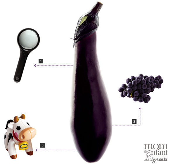 빨간 수박, 노란 참외, 주황색 오렌지 등 다양한 컬러의 과일은 어떤 맛인지 아이에게 상상해보게 한다. 각각의 채소나 과일을 믹서에 갈아 주스를 만들고 아이와 함께 맛본 다음 맛에 대해 이야기한다. “그럼 보라색은 어떤 맛일까?” 색깔에 대한 이야기를 나누다 보면 보라색 채소인 가지에도 관심을 보일 것이다.
