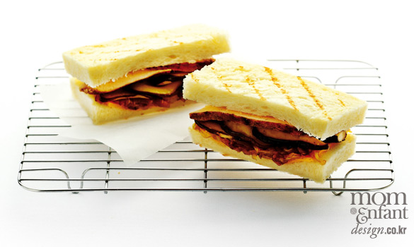 6 식빵 한쪽에 버터를 바르고 ③, ④, ⑤, 식빵 순으로 올린다.
