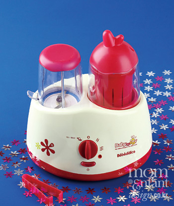 좋은 재료로 정성껏 요리하지만 끓이고 볶는 사이에 파괴되는 영양소가 만만치 않다. 영양소를 그대로 보존하면서도 신선한 재료의 맛을 살리려면 스팀으로 조리하는 것이 좋은데, 그런 엄마의 소망을 이루어주는 것이 바로 베이비무브의 스팀이유식조리기 베베델리스이다. 먼저 재료를 적당한 크기로 잘라 스팀으로 익힌 후 믹서로 갈아주면 15분 만에 이유식이 완성되는데, 모든 과정이 하나의 이유식조리기로 가능해 간편하고 조리시간도 짧다. 이 외에도 분유 또는 이유식을 데우거나 젖병을 소독할 수 있고, 믹서로도 활용 가능하며, 간단한 간식도 스팀을 이용해 데우기가 가능하다. 16만8천원, 고은맘 제품.