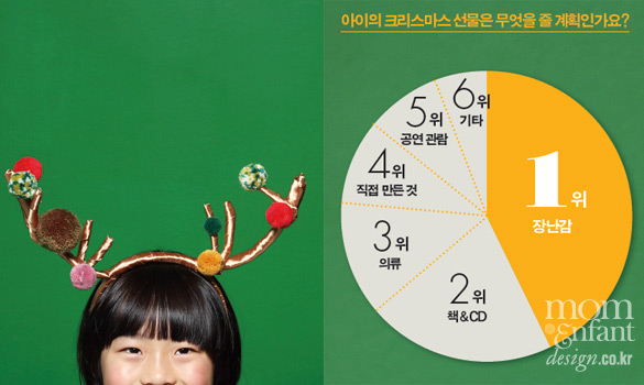 2009년 엄마들의 사랑을 받은 물건은 수없이 많지만, 그중 크리스마스 때 양말 속에 넣어둘 만큼 특별한 선물은 과연 어떤 것들일까? 2천여명의 엄마들과 <맘&앙팡>이 고른 선물 리스트를 공개한다. 산타클로스의 마법이 부럽지 않은 선물 1백가지. Present1 크리스마스가 처음인 아이를 위한 선물