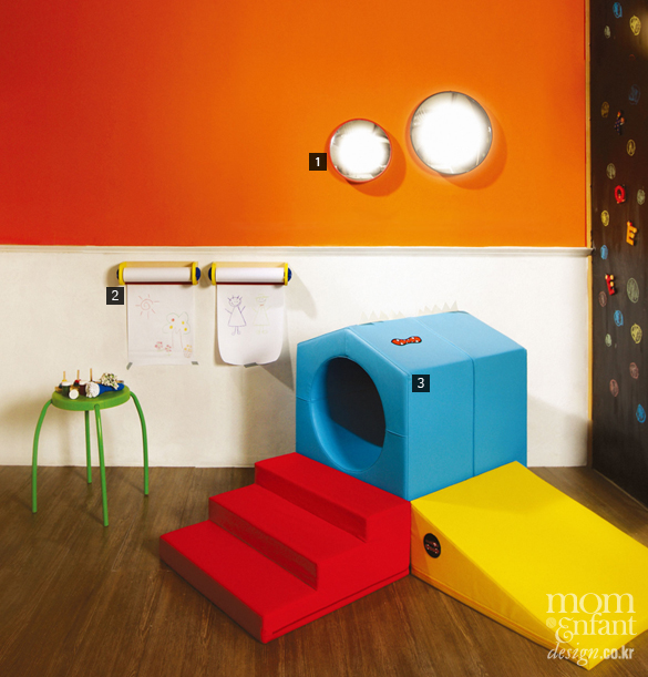 1 표정 놀이를 위한 거울크고 작은 거울을 여러 개 마련해 벽에 붙이면 데코 효과도 있을 뿐만 아니라 아이가 몸짓과 표정을 재미있게 바꾸며 놀 수도 있다.