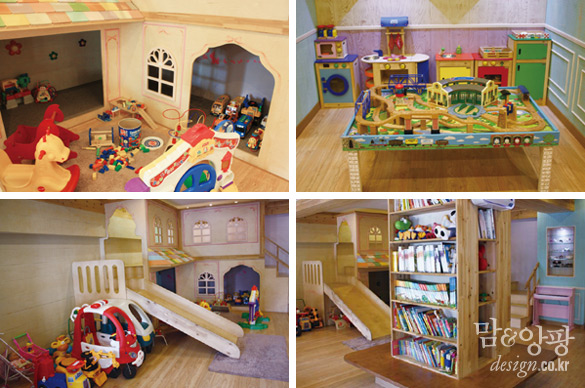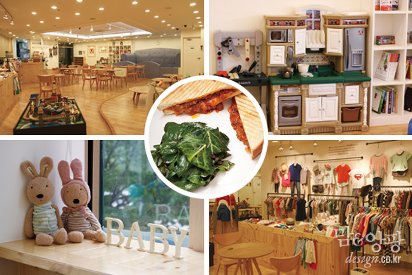 아담한 좌식 테이블과 파스텔톤 인테리어가 만들어내는 정겨움 때문일까. 실내에 들어서면 마치 아기를 키우고 있는 친구네 집에 놀러 온 듯 아늑한 분위기에 마음이 편안해진다. 5세 미만 아이만 입장 가능한 카페 방침에서 드러나듯 혈기왕성한 ‘형아’들이 뛰어노는 곳이라기보다는 아장아장 걷는 아이를 데리고 가서 한나절 놀고 오기에 딱 좋은 분위기. 천연 삼나무로 인테리어를 해서 아토피 피부 아이도 무난하게 이용할 수 있고, 손으로 직접 만지며 인지 창의력을 발달시킬 수 있는 원목 놀잇감이 다양한 것도 특징. 생일을 맞은 어린이는 관련 서류 지참 시 무료로 입장할 수 있고 5회 방문 시 어린이 무료 입장권 증정, 10회 방문 시 어린이 무료 식사권을 증정하는 등 다양한 이벤트를 진행하고 있으니 기억해두자.