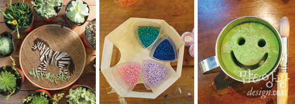 아이가 놀이를 통해 창의력을 키우기를 바라는 젊은 엄마들에게 인기다. 외관은 고급스러운 분위기의 카페지만, 내부에 들어서면 아이들 천국이다. 엄마가 커피나 차를 주문하고 아이들은 원하는 크래프트 키트를 주문하면, 어디서도 경험하지 못했던 창작 활동을 선생님과 함께 체험할 수 있다. 이곳의 크래프트 활동은 단순한 미술활동이 아니다. 라면과 파스타, 솔방울, 조개껍데기 등 일상에서 만나는 모든 것이 창작활동의 재료다. 아이가 전지 위에 누우면 엄마가 몸을 따라 아이의 형상을 그려주고 아이는 종이 위 자신의 몸을 색칠하는 마이 보디페인팅 (My Body Painting)도 즐겁다. 크래프트 코너에는 작업용 티셔츠가 준비되어 있고 사용하는 모든 물감과 풀은 어린이 전용 무독성 제품이니 걱정 끝. 아이가 좋아한다면 그래프트 클래스를 신청할 수 있다. 영어로 하는 ‘노랑 크래프트’ 클래스, ‘아티스트 미술’ 클래스가 운영되고 있고, ‘쿠킹 아트’ 클래스, ‘우쿨렐레’ 클래스도 인기다. 대부분 6명 정원으로 4~6주간 주 1회 진행된다(12만원).