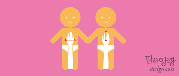 유두와 유두 사이에 손바닥을 올리고 좌우, 상하 로 10회씩 반복해 문지른다. 기침과 가래를 없애주고 호흡기 질병을 예방한다.