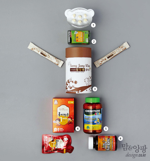 4 홍이장군 1단계 6년근 홍삼 농축액과 녹용, 당귀, 칼슘, 비타민 등이 풍부한 제품. 3~4세 아이 1일 1회 1포 섭취. 30포 8만원, 주 한국인삼공사.
