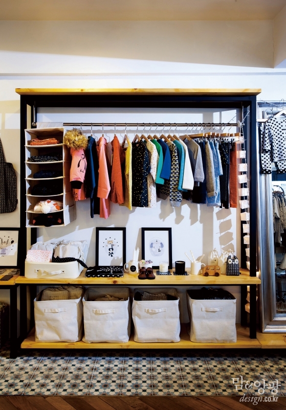 유아용품은 으레 알록달록해야 한다는 고정관념을 깨고 블랙과 화이트컬러를 중심으로 모던하고 심플한 유아용품과 의류를 선보인다. 아이 물건도 이토록 시크하고 세련될 수 있다는 걸 보여주는 듯하다. 삼성동에 위치한 쇼룸에서는 아이 방 수납과 정리정돈 아이디어를 얻을 수 있고, 옷과 각종 장난감, 육아용품을 매장 디스플레이하듯 예쁘게 정리하는 방법을 엿볼 수 있다.