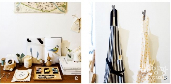 2 그림이 예쁜 동화책을 펼쳐 세워두는 것도 아이의 예술적 감성을 키 우는 좋은 방법이다. 아이 장난감, 헤어핀 등을 정리할 때 원목 트레이와 나무소재 오브제들과 함께 톤을 맞추는 것도 훌륭한 인테리어 노하우다.