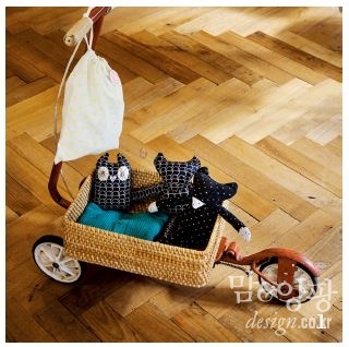 1 아이가 싫증나 더 이상 타지 않는 승용완구에 바구니를 올리고 장난감을 정리해둔 아이디어가 돋보인다.