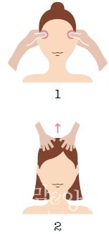마사지 양손으로 정수리 윗부분을 넓게 잡은 후 위로 살짝 당기듯이 두피를 마사지하면 머리가 시원해지고 두통이 완화된다. 단, 두피를 손톱으로 자극하지 않도록 주의한다.